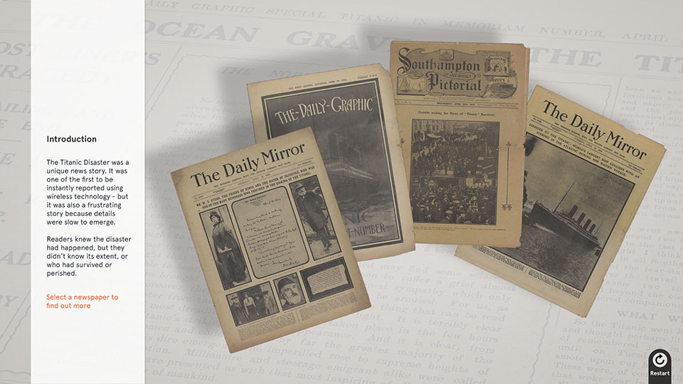 Created 2 touchscreen applications for Seacity Museum, Southampton. One with sophisticated scrolling navigation the other using page flip interaction.