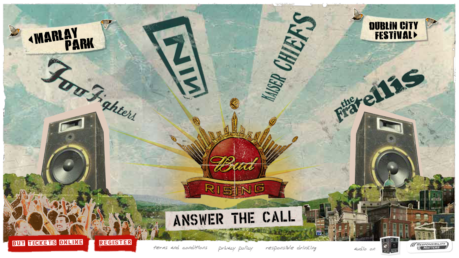 Website commissioned by Budweiser for their Marlay Park music festival. I built the code framework, video functionality, programmatic animation. Web services communicated with the Budweiser backend.